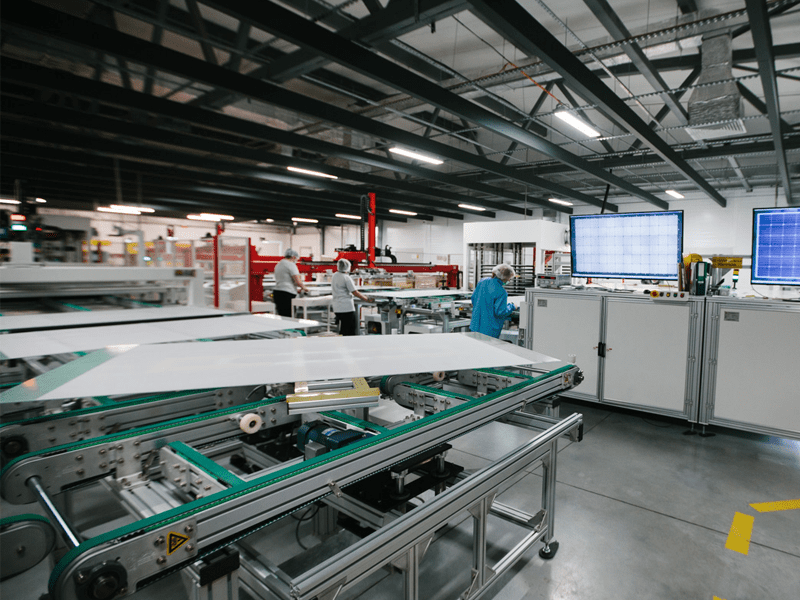 Завод оснащений найсучаснішим обладнанням для виробництва сонячних панелей. До того ж всі процеси виготовлення повністю автоматизовані, тому ручна праця повністю відсутня. У робочий час на заводі перебуваються лише працівники, які контролюють роботу техніки та ті, хто займається обслуговуванням обладнання.