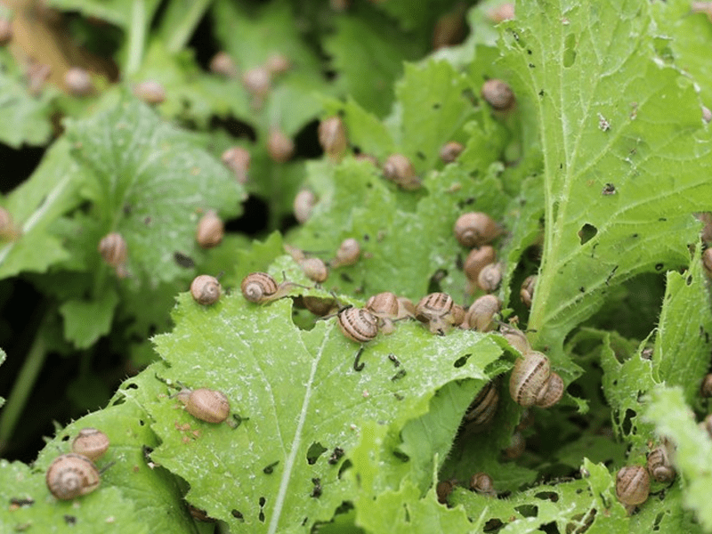 Коли молоді особини підростають їх переселяють у вольєри на землі, на свіжому повітрі. Молюски ростуть під дерев’яними щитами, де вони отримують необхідний затінок та вологу. Вольєри заповнені зеленим листям ріпаку, який поїдає молодняк. Далі равликів годують спеціальним комбікормом, що дає можливість виростити їх протягом одного сезону. Вид Helix Aspersa Maxima відзначається швидким ростом. За шість місяців вони збільшують вагу у 30-40 разів. З кінця вересня до початку лютого молюсків збирають і готують на продаж.