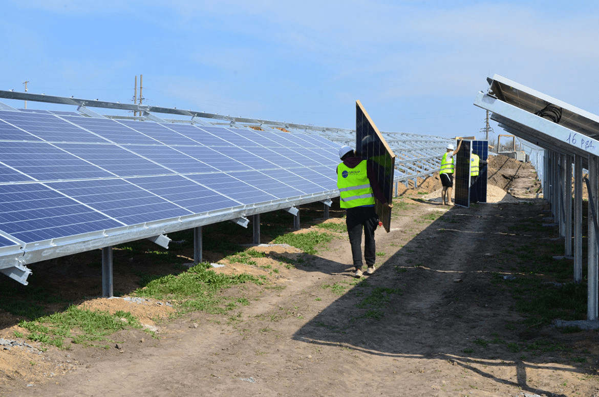 Зведення станції розпочалось у квітні 2018 року. Першим ділом збудували паркан з колючим дротом, аби вберегтись від крадіїв. На ділянці встановили понад 18 тисяч фотомодулів. Всі вони закріплені на металевих конструкціях з бетонним фундаментом в основі, що забезпечує надійність при сильному вітрі зі швидкістю від 30-37 метрів за секунду, зливі, граді та за іншої негоди. Збір станції зайняв майже пів року.