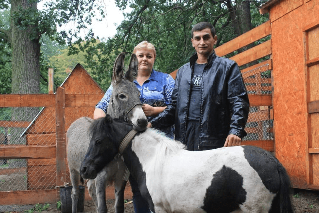 Одного з коней родина викупила зі скотобійні. Поні та віслюк потрапили до притулку з біопарку. У поні з народження були проблеми з ногами, тому її хотіли відправити на бійню, у тих самих власників був і непотрібний їм віслюк. Обох подружжя забрало до себе, де тварини стали найкращими друзями. Диких кіз привезли люди. Карликових коней притулок отримав у подарунок із зоопарку Межигірʼя.