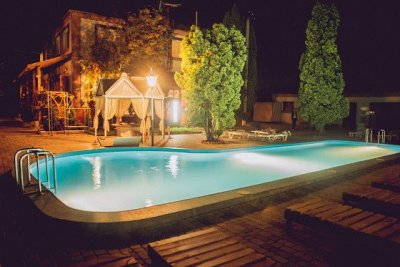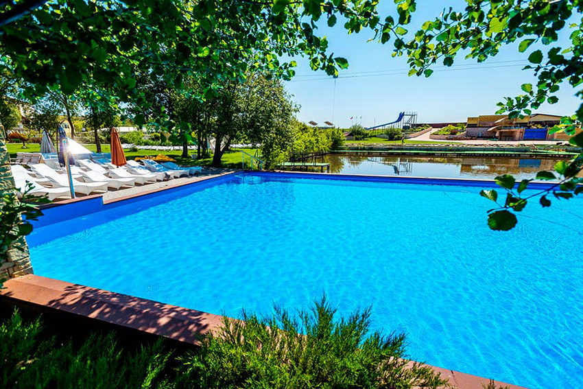 Гості можуть обрати один із чотирьох басейнів, серед яких є великий із водоспадом, ландшафтний і басейни з підігрівом. Для комфортного відпочинку передбачені альтанки, сімейні лоджії, зручні шезлонги й відкритий банкетний зал на 100 гостей. Вишуканий ресторан пропонує страви європейської та середземноморської кухні, мангал-меню, бургери, фірмові мілкшейки, а також коктейлі й настоянки від професійних барменів.